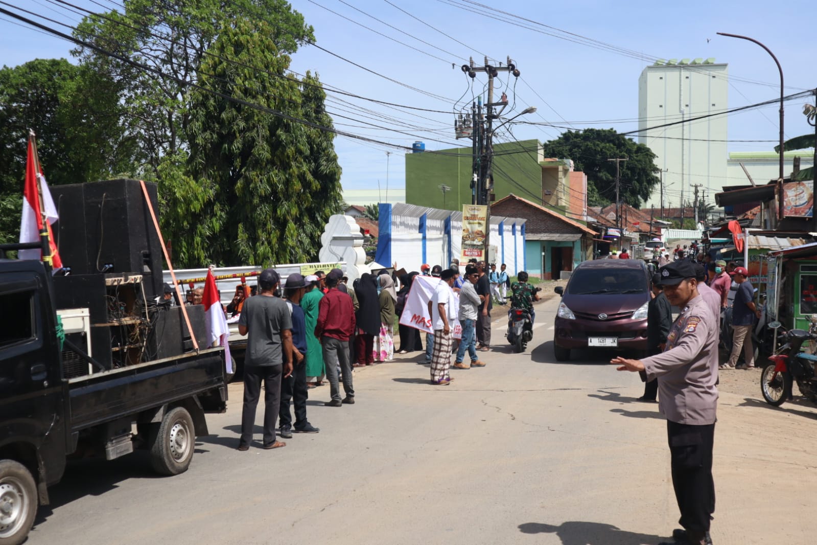 Sebelum aksi dimulai, Kanit 4 Satintelkam Polres Cilegon IPTU Asep Sunarya memberikan imbauan agar massa menyampaikan aspirasi secara damai dan tidak mengganggu ketertiban umum. Massa yang dipimpin oleh Korlap bernama Ngadi Susanto (Alex) memulai longmarch dari titik kumpul di tanah wakaf dekat pemancingan RT 002/004 menuju lokasi aksi.
