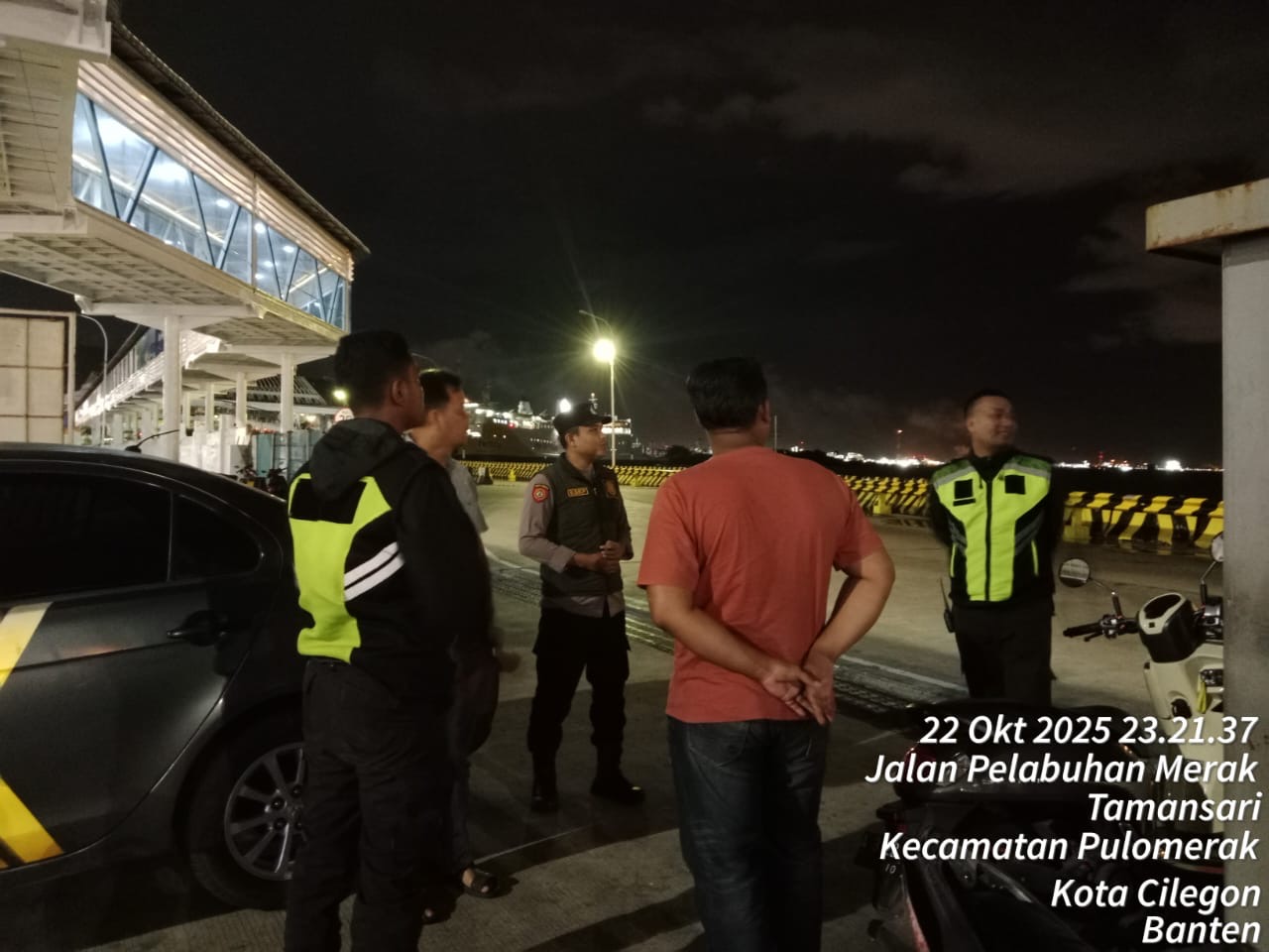 Cilegon - Personil Polsek Kskp Merak Polres Cilegon melaksanakan patroli di kawasan pelabuhan merak memberikan rasa aman dan damai, Kamis (23/10/2025)