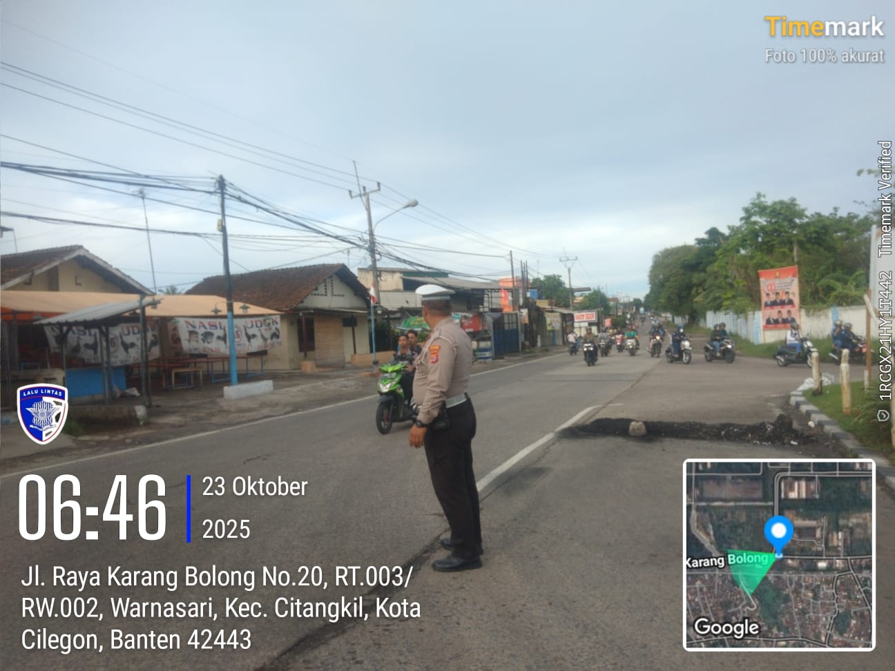Cilegon - Tingginya mobilitas masyarakat pada jam-jam sibuk, tingkat kerawanan baik itu kemacetan ataupun kecelakaan pasti ada potensi, sehingga untuk mengantisipasi hal tersebut Personil Polsek Ciwandan Polres Cilegon Polda Banten Bhabinkamtibmas melaksanakan Strong Point pada sejumlah lokasi, Kamis (23/10/2025).