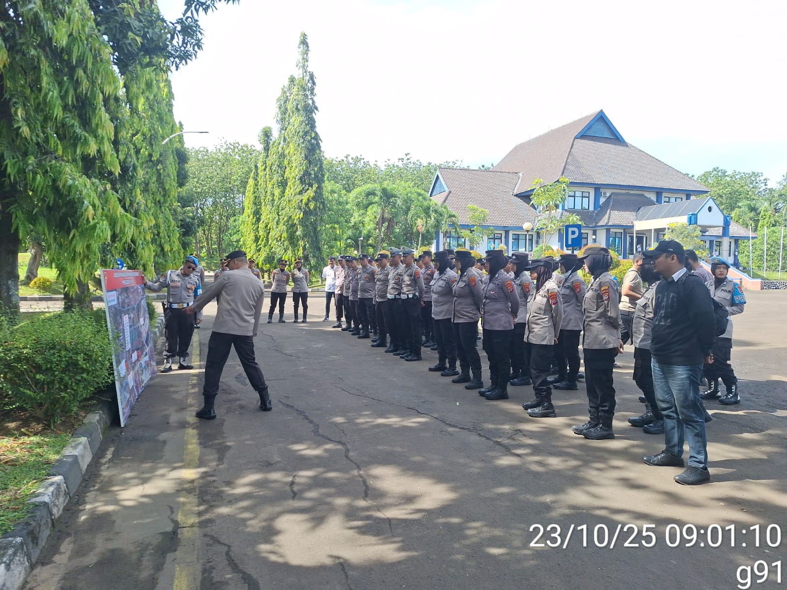 Cilegon – Sebelum melaksanakan pengamanan unjuk rasa,Kapolsek Ciwandan Polres Cilegon Polda Banten KOMPOL Andi Suherman Pimpin Apel Kesiapan Pelaksanaan Pengamanan unjuk rasa dan berikan Arahan Kepada Personil Yang Melaksanakan Pengamanan Unjuk Rasa, Kamis (23/10/2025).