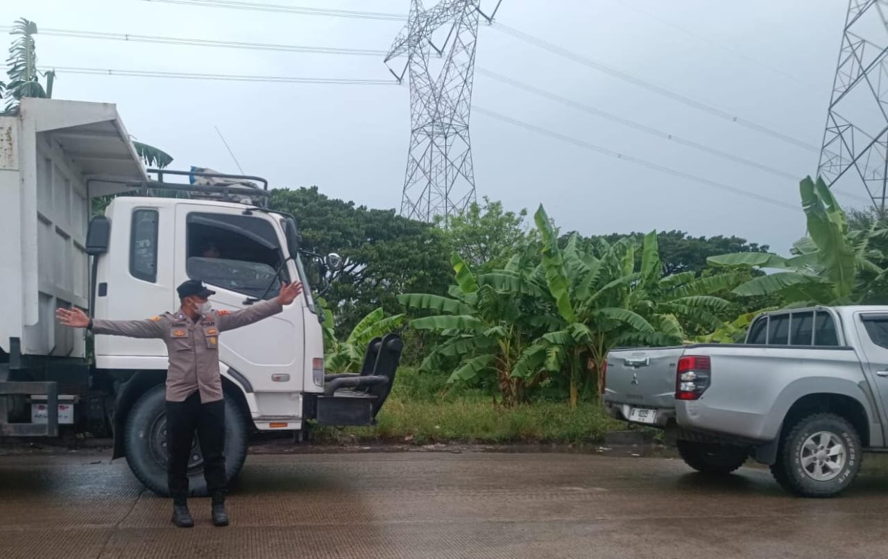 Antisipasi kecelakaan lalu lintas, personil polsek cibeber lakukan pengaturan lalin