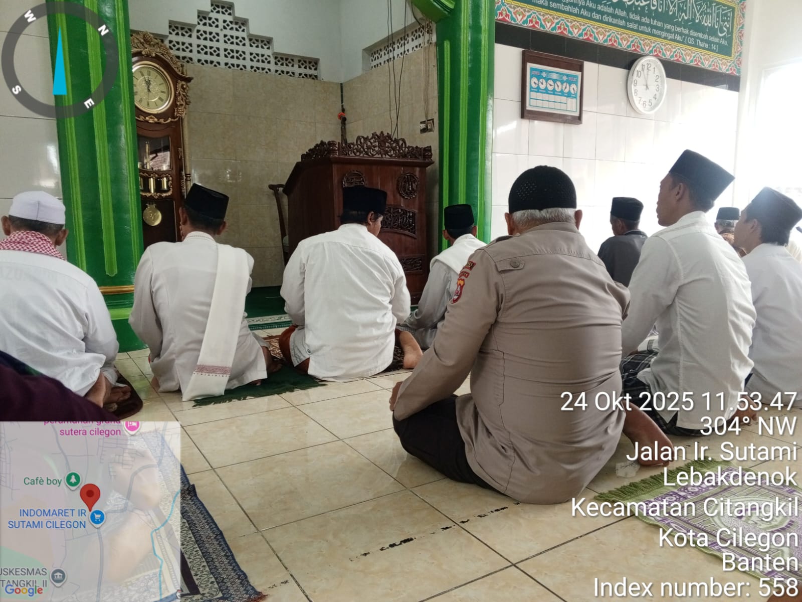Cilegon - Dalam Rangka Implementasi Program Kapolda Banten Yaitu Sholat Jum’at Keliling Dan Berjama’ah Serta Memakmurkan Masjid, Wakapolsek Ciwandan AKP Uup M. Ma'ruf Dan Bhabinkamtibmas Polsek Ciwandan Polres Cilegon Polda Banten Sholat Berjama’ah dan Bersilaturahmi Bersama masyarakat sebagai upaya meningkatkan Ukhuwah Islamiyah dalam menjalin silaturahmi dan membangun komunikasi yang baik,Jum’at (24/10/2025).