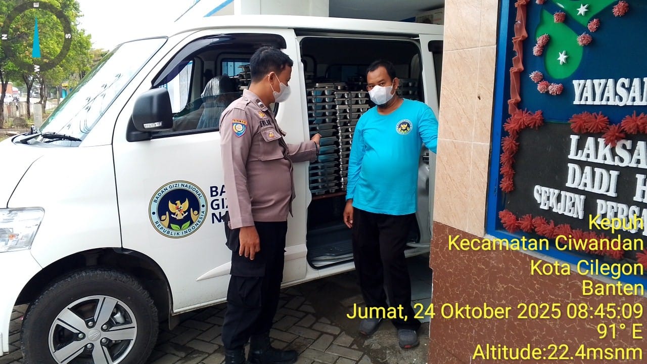 Kapolres Cilegon Polda Banten AKBP Dr Martua Raja Taripar Laut Silitonga Melalui Kapolsek Ciwandan Polres Cilegon Polda Banten KOMPOL Andi Suherman Mengatakan bahwa kegiatan ini bertujuan untuk memastikan kesiapan program MBG dan menyampaikan himbauan Kamtibmas kepada masyarakat.