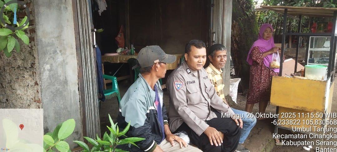 *Polres Cilegon* - Guna Menekan Gangguan Kamtibmas (GKTM) ,Bhabinkamtibmas Polsek Cinangka Polres Cilegon Polda Banten melakukan kegiatan Sambang di daerah hukum Polsek Cinangka, Minggu (26/10/2025).