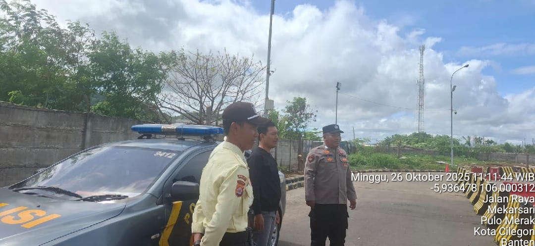 Cilegon - Personel Polsek Kskp Merak Polres Cilegon Polda Banten melaksanakan sambang dan patroli kawasan pelabuhan merak dalam rangka menjaga Harkamtibmas di Kawasan Pelabuhan Merak, Minggu (26/10/2025).