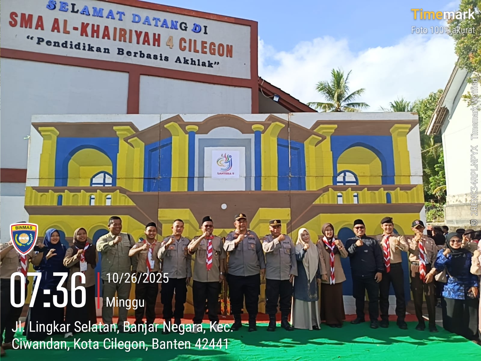 Cilegon - Kasat Binmas IPTU Muhidin dan Wakapolsek Ciwandan AKP Uup M. Ma'ruf Serta Bhabinkamtibmas Polsek Ciwandan menghadiri kegiatan pembukaan Lomba Tangkas Pramuka Se-Banten Tahun 2025 di SMA Al-Khairiyah 4 Cilegon, Minggu (26/10/2025).