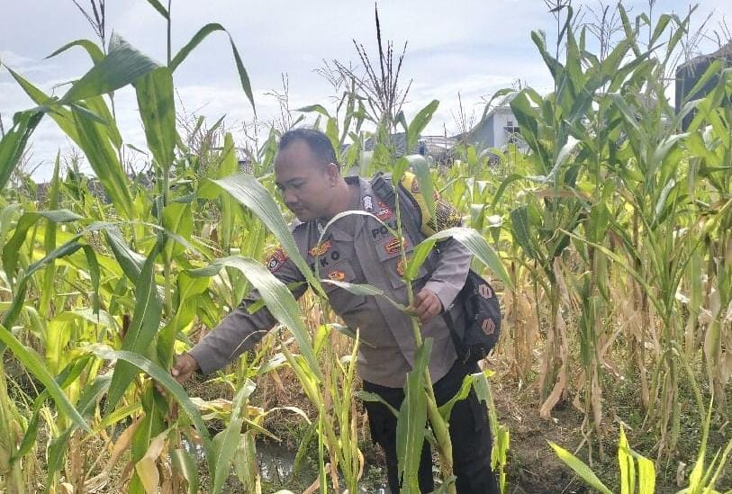Pada kesempatan tersebut personil bhabinkamtibmas polsek Cibeber Polres Cilegon Polda Banten meninjau langsung lahan pertanian Jagung milik warga Binaan Lingkungan kelurahan Karang Asem Kec. Cibeber.