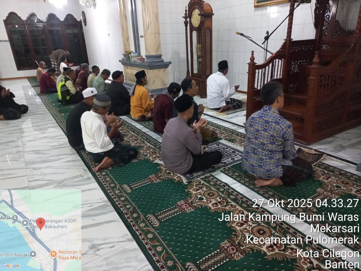 Cilegon – Personil Kskp Merak Polres Cilegon Polda Banten menggelar kegiatan Pembinaan Rohani dengan shalat subuh keliling di Masjid Yang ada Di Daerah hukum Polsek Kp Merak Polres Cilegon Polda Banten, Senin (27/10/2025).