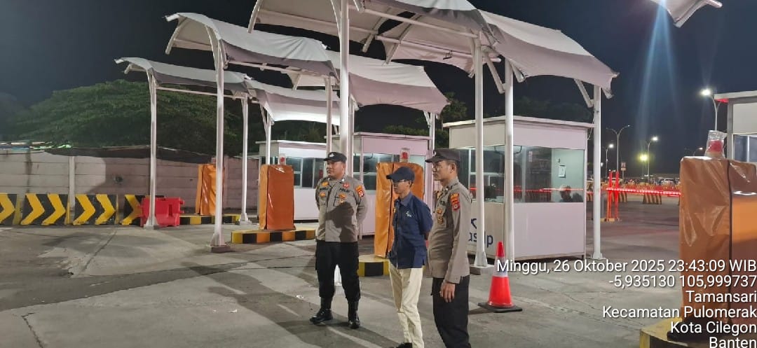Cilegon - Personil Polsek Kskp Merak Polres Cilegon melaksanakan patroli di kawasan pelabuhan merak memberikan rasa aman dan damai, Senin (27/10/2025)