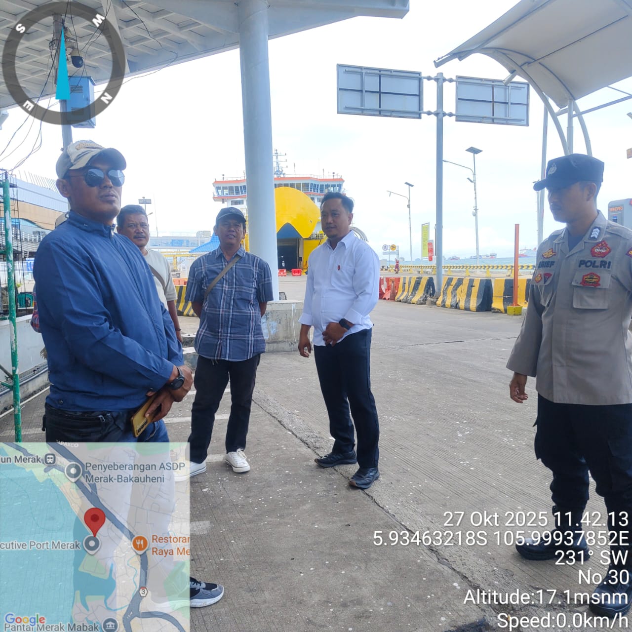Cilegon - Personel Polsek Kskp Merak Polres Cilegon Polda Banten melaksanakan sambang dan patroli kawasan pelabuhan merak dalam rangka menjaga Harkamtibmas di Kawasan Pelabuhan Merak, Senin (27/10/2025).