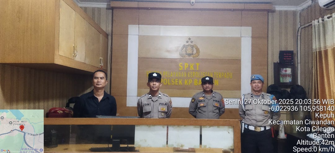 Cilegon.  Personel piket jaga Polsek Kskp Banten Polres Cilegon Polda Banten melaksanakan Pengamanan Mako Polsek, Senin (27/10).