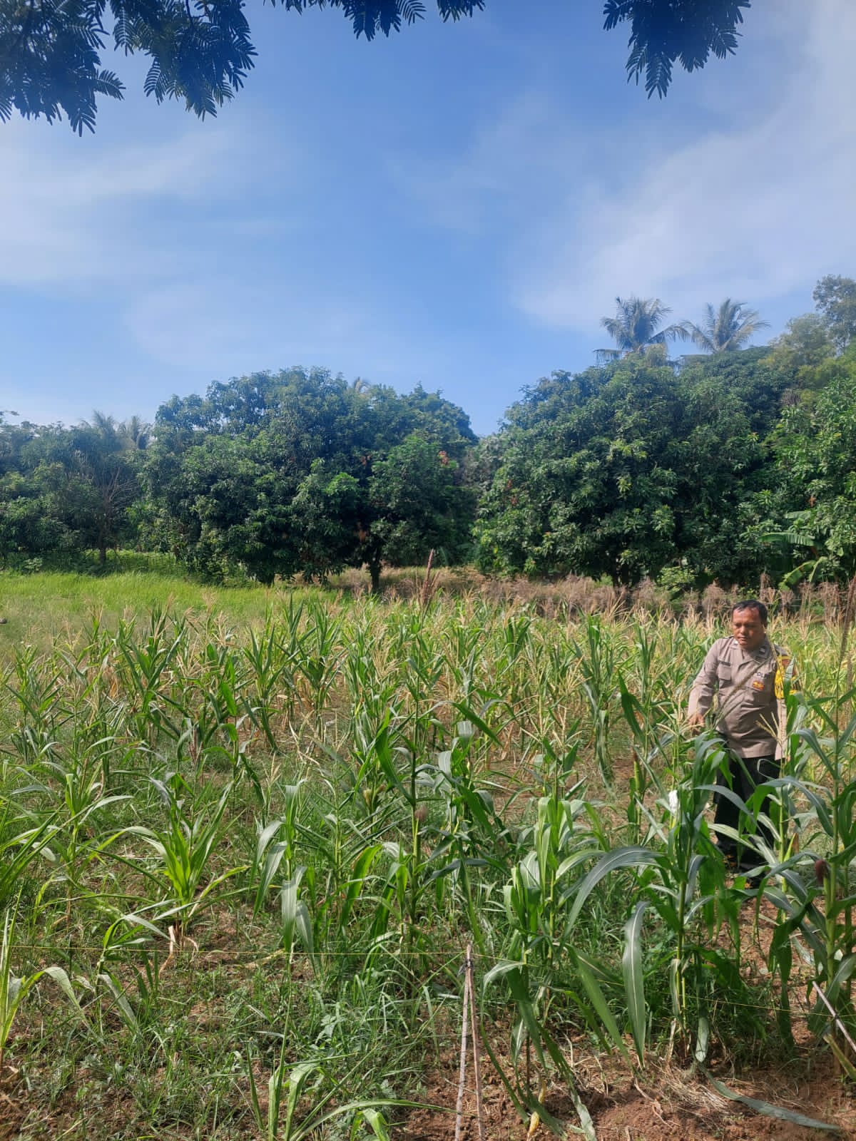Pantau lahan jagung kelompok tani Sinarjaya Kec. Puloampel Merak Banten oleh Personel Bhabinkamtibmas Polsek Puloampel.