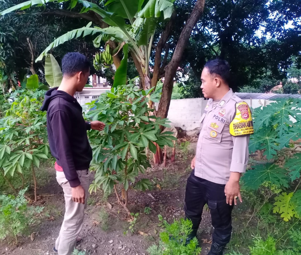Menurut pada kesempatan ini menyambangi warga sekaligus kunjungan rutin dan mempererat silaturahmi serta menyampaikan pesan Kamtibmas agar tetap terjaga keamanan lingkungan yang kondusif, berupaya untuk mendekatkan diri dengan masyarakat serta mendeteksi permasalahan yang ada yang dapat diselesaikan oleh petugas babin di Desa dan pembinaan guna memperlihatkan kehadiran Negara di tengah-tengah masyarakat, khususnya dalam hal menjaga Harkamtibmas, serta menghimbau masalah keamanan terutama di lingkungan serta mengantisipasi cuaca Ektrim saat ini,