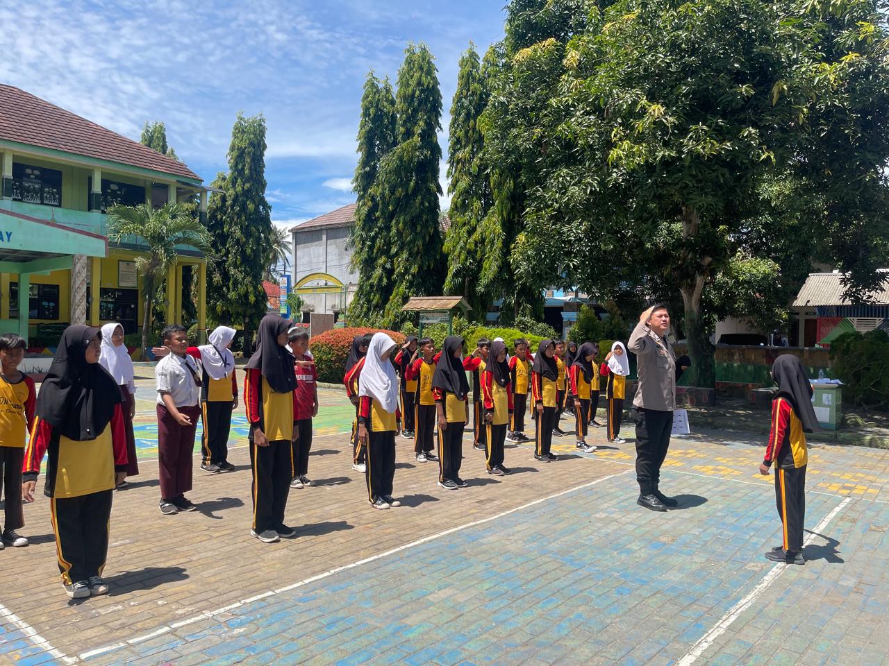 Dalam sambutannya, Bhabinkamtibmas menyampaikan bahwa kegiatan ini merupakan wujud nyata kepedulian Polri terhadap dunia pendidikan serta pembinaan generasi muda agar tumbuh menjadi pelajar yang disiplin, bertanggung jawab, dan cinta tanah air.