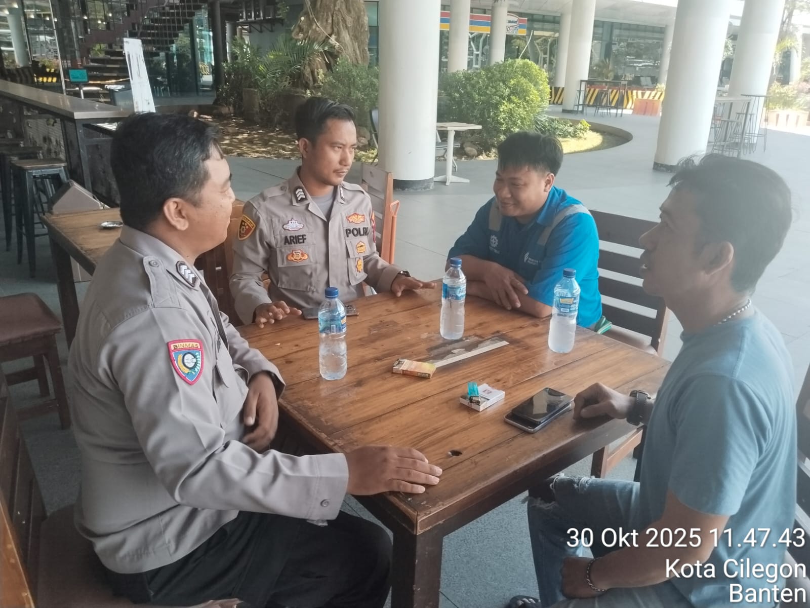 Cilegon - Personel Polsek Kskp Merak Polres Cilegon Polda Banten melaksanakan sambang dan patroli kawasan pelabuhan merak dalam rangka menjaga Harkamtibmas di Kawasan Pelabuhan Merak, Kamis (30/10/2025).