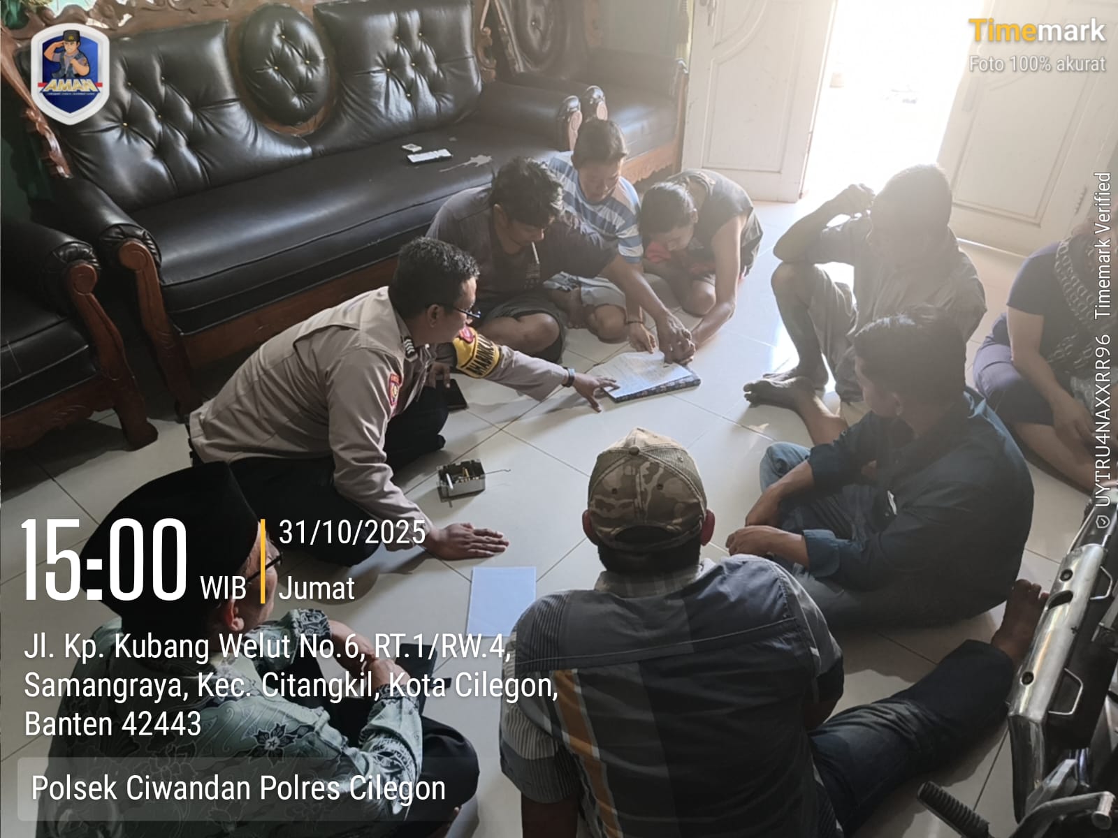 Kapolres Cilegon Polda Banten AKBP Dr. Martua Raja Taripar Laut Silitonga Melalui Kapolsek Ciwandan Polres Cilegon Polda Banten KOMPOL Andi Suherman Menerangkan bahwa membantu warga menyelesaikan masalah yang dialami oleh warga Masyarakat dan Sudah menjadi tugas dan kewajiban Bhabinkamtibmas untuk melakukan giat problem solving dengan memediasi setiap permasalahan yang terjadi di daerah binaannya dalam rangka menciptakan situasi kamtibmas tetap kondusif,” ucap Kapolsek.
