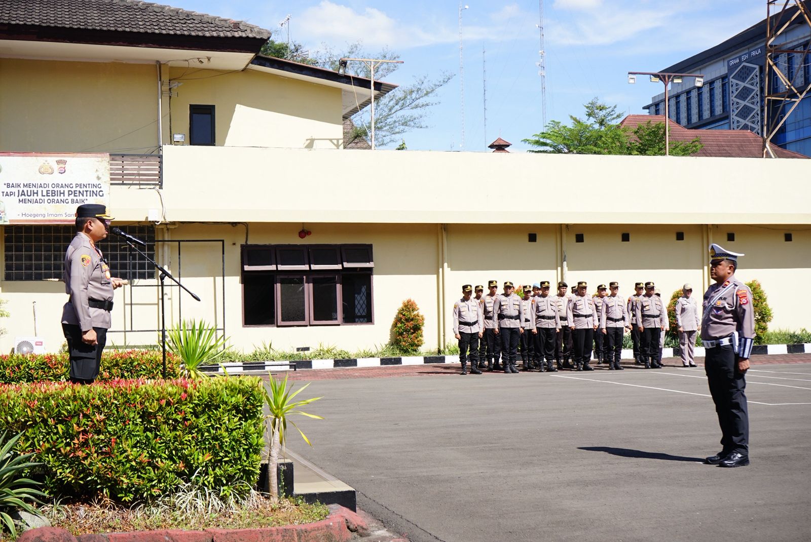 Apel yang dipimpin langsung oleh Kapolres Cilegon, AKBP Dr. Martua Raja Taripar Laut Silitonga, S.H., S.I.K., M.Si., ini bertujuan memperkuat semangat kebersamaan dan menjaga kondusifitas di wilayah hukum Polres Cilegon. Turut hadir PJU Polres Cilegon, para perwira, personel gabungan satuan fungsi, perwakilan serikat buruh, serta komunitas ojol Kamtibmas Kota Cilegon.