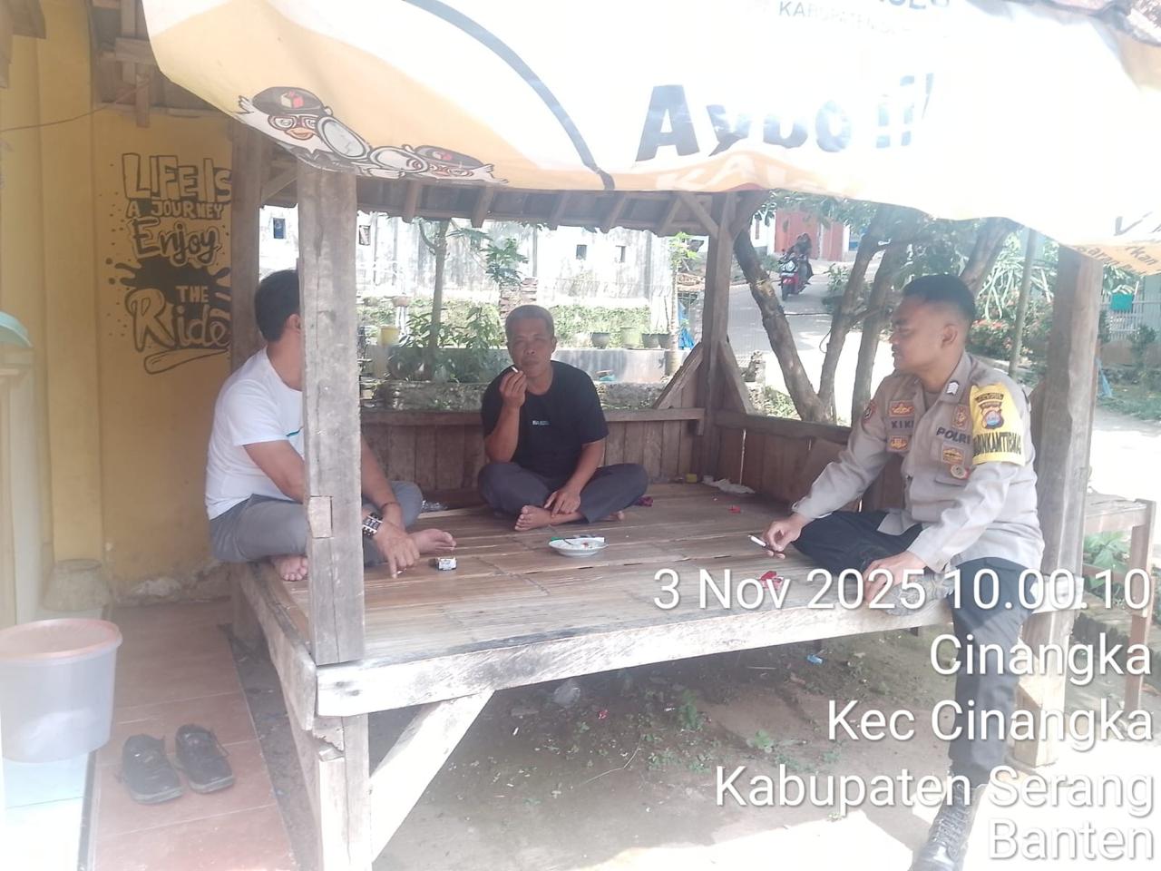 Kapolres Cilegon Polda Banten AKBP Martua Raja Taripar Laut Silitonga Melalui Kapolsek Cinangka Polres Cilegon Polda Banten IPTU Rusnata Mengatakan kegiatan sambang ini rutin dilaksanakan oleh seorang babinkamtibmas di daerah binaannya setiap hari guna mendekatkan diri kepada masyarakat juga memberikan pesan-pesan kamtibmas diantaranya menghimbau kepada masyarakat agar meningkatkan kewaspasaan guna mencegah terjadinya tindak kriminal.
