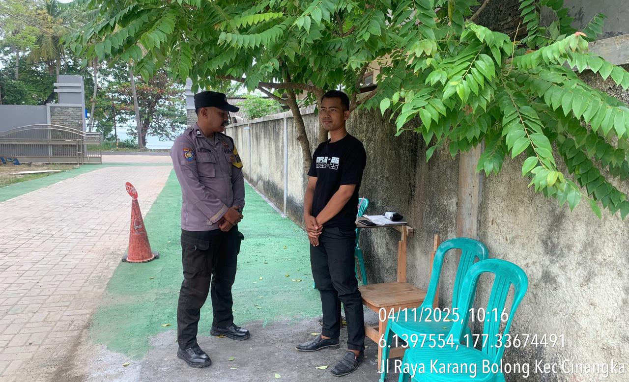 *CILEGON* dalam Rangka Mengantisipasi Gktm di wilayah Personil Bhabinkamtibmas Cinangka melaksanakan patroli Dialogis dengan Kepala Desa dan warga dan Menanyakan situasi Kamtibmas di wilayah dalam Rangka Menjaga Harkamtibmas di Desa Binaannya Kecamatan Cinangka Kab. Serang. Selasa.(04/11/2025).