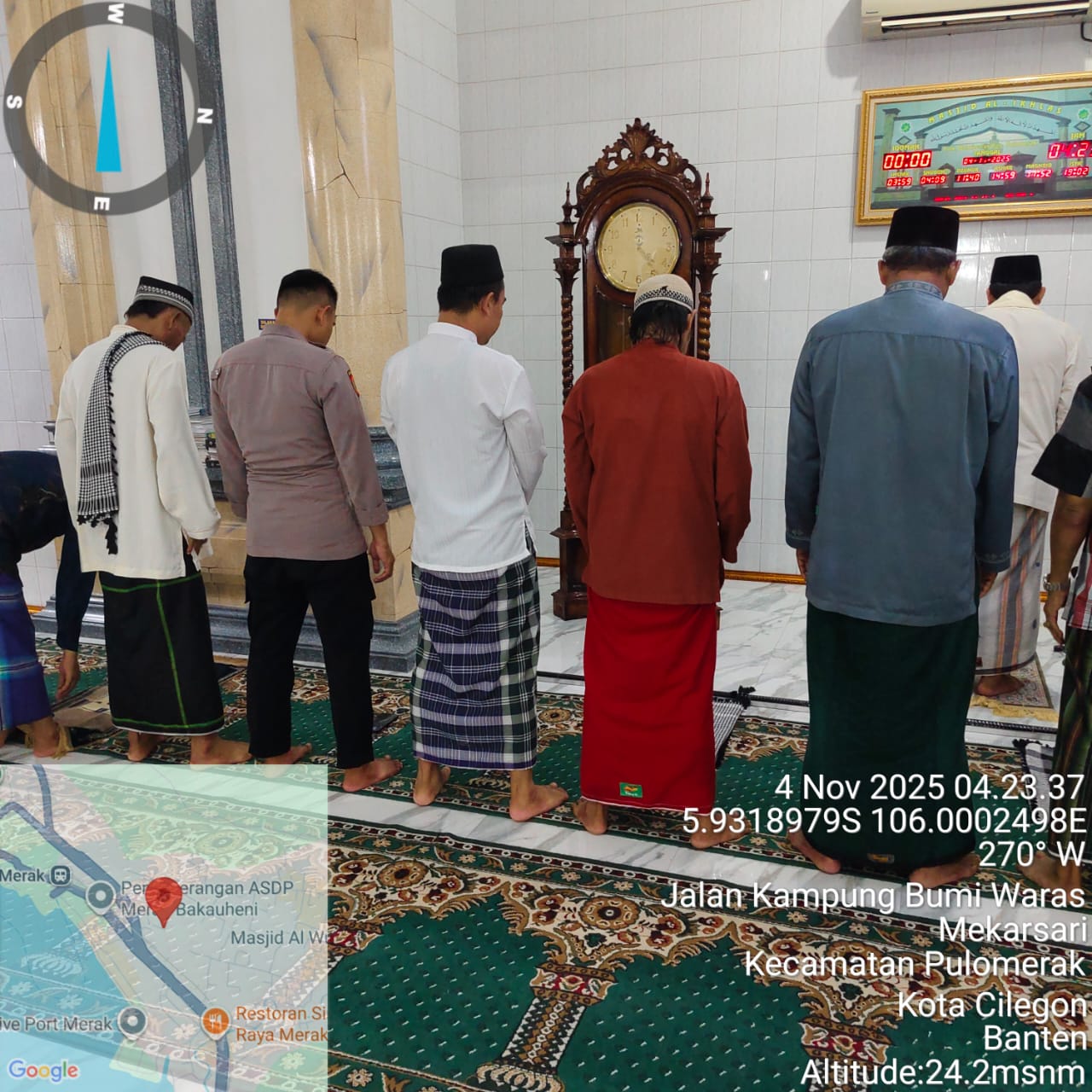 Cilegon – Personil Kskp Merak Polres Cilegon Polda Banten menggelar kegiatan Pembinaan Rohani dengan shalat subuh keliling di Masjid Yang ada Di Daerah hukum Polsek Kp Merak Polres Cilegon Polda Banten, Selasa (04/11/2025).