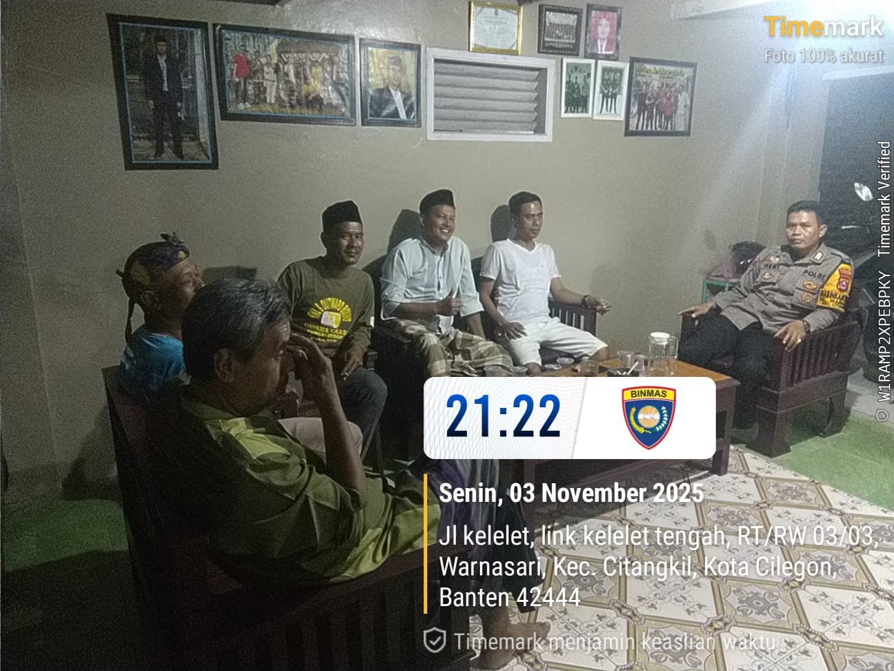 Cilegon - Bhabinkamtibmas Polsek Ciwandan Polres Cilegon Polda Banten Lakukan Sambang Malam guna mengantisipasi aksi kejahatan pada daerah binaan dan memberikan rasa aman dan nyaman kepada warga binaan, Selasa (04/11/2025).