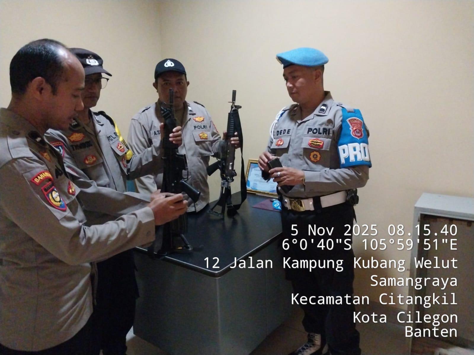 Kapolres Cilegon Polda Banten AKBP Dr. Martua Raja Taripar Laut Silitonga Melalui Kapolsek Ciwandan Polres Cilegon Polda Banten KOMPOL Andi Suherman Menekankan dan menegaskan dalam serah terima tugas jaga Mako dan pelayanan KA-SPKT wajib mengecek barang Inventaris mulai dari Senpi Dinas, Mobil Patroli, serta barang Inventaris lainya termasuk Mako apabila ada hal yang tidak sesuai wajib di cek secara seksama sehingga sewaktu serah terima tidak ada yang terabaikan dan dapat dipertanggung jawabkan, ungkapnya.