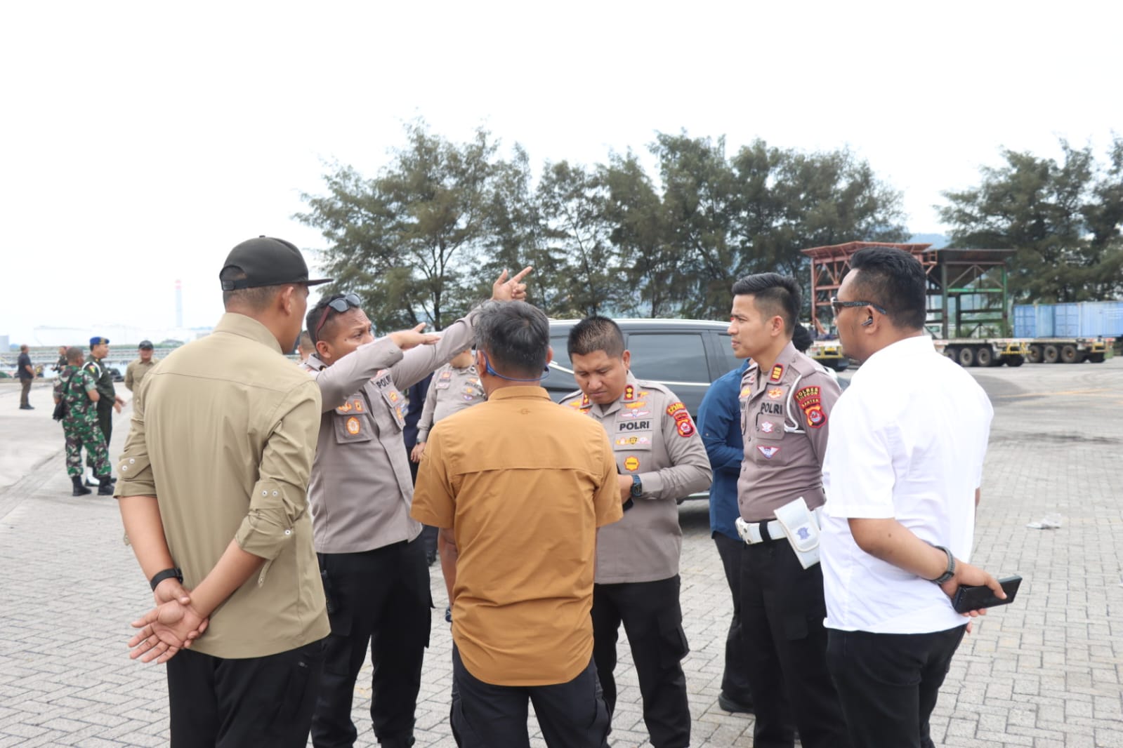 Kapolres Cilegon menjelaskan bahwa pengecekan dilakukan secara menyeluruh, mulai dari titik pendaratan helikopter di area PT. Indah Kiat hingga jalur darat yang akan dilalui menuju lokasi peresmian di PT. Lotte Chemical Indonesia.