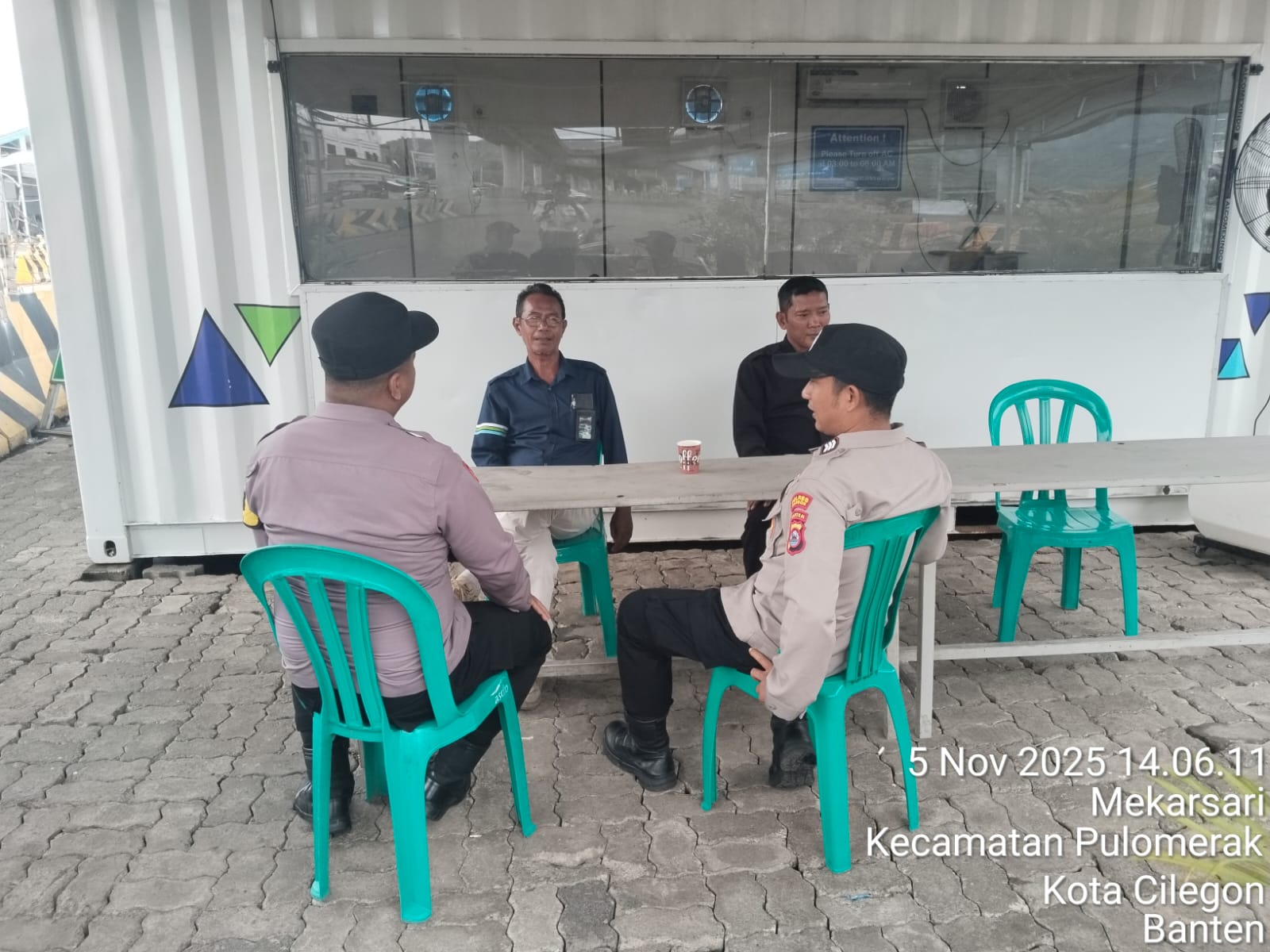Cilegon - Personel Polsek Kskp Merak Polres Cilegon Polda Banten melaksanakan sambang dan patroli kawasan pelabuhan merak dalam rangka menjaga Harkamtibmas di Kawasan Pelabuhan Merak, Rabu (05/11/2025).