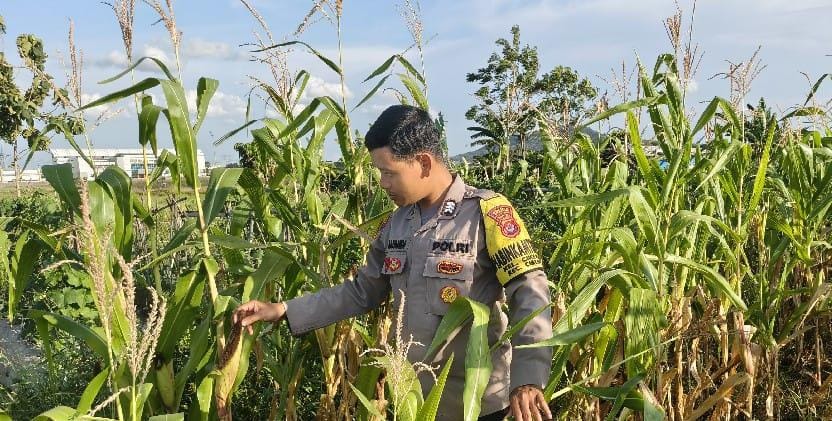 Implementasi Program Asta Cita, personil bhabinkamtibmas polsek Cibeber monitoring di perkebunan Jagung*