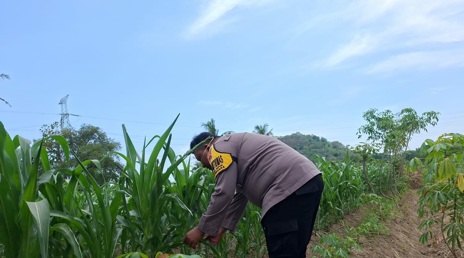 Anggota Bhabinkamtibmas Pantau Lahan Jagung Dukung Program Ketahanan Pangan