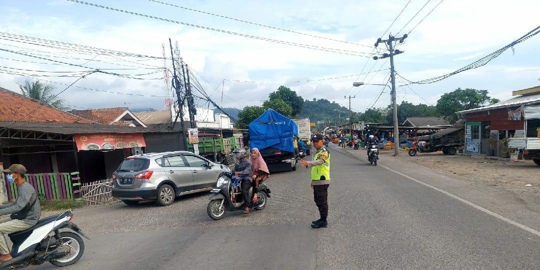 Anggota Bhabinkamtibmas Gatur lalin pagi hari utk mengurai kemacetan di perempatan Bunder wilayah hukum Bojonegara