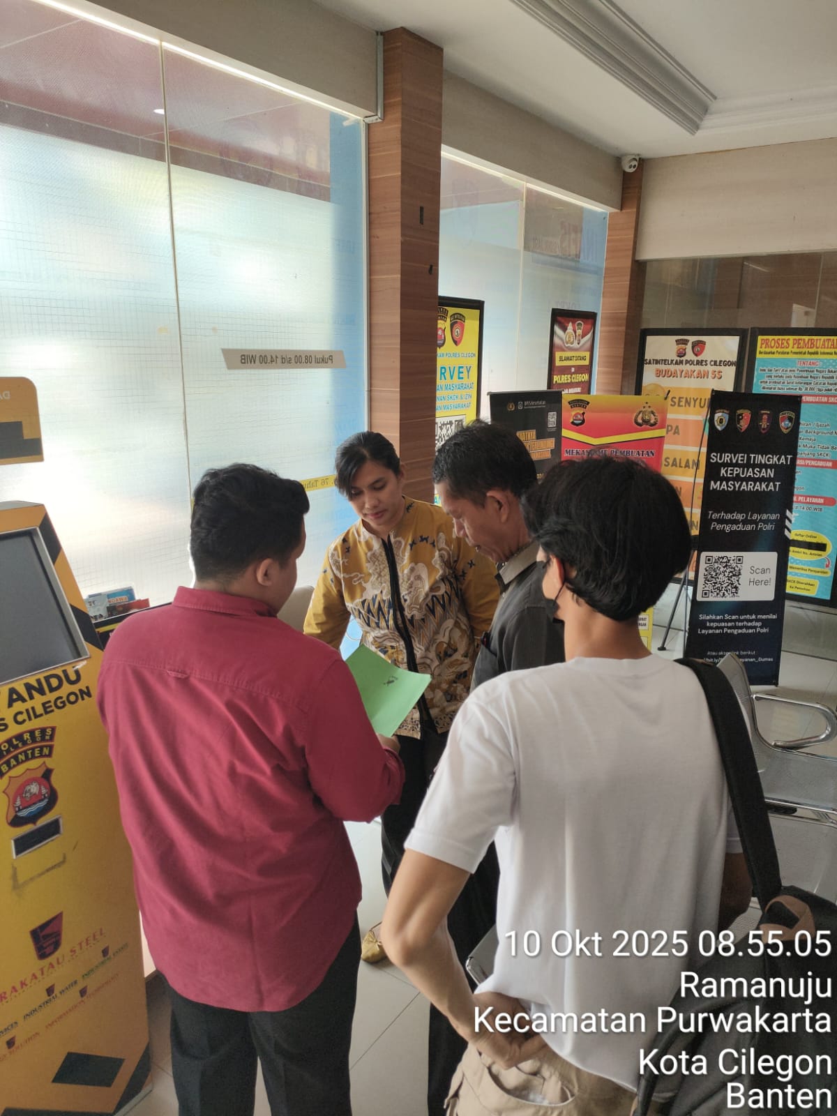 Polres Cilegon, anggota SPKT Memberikan PenyuluhanKepada Masyarakat Tentang Tata Cara Pelaporan