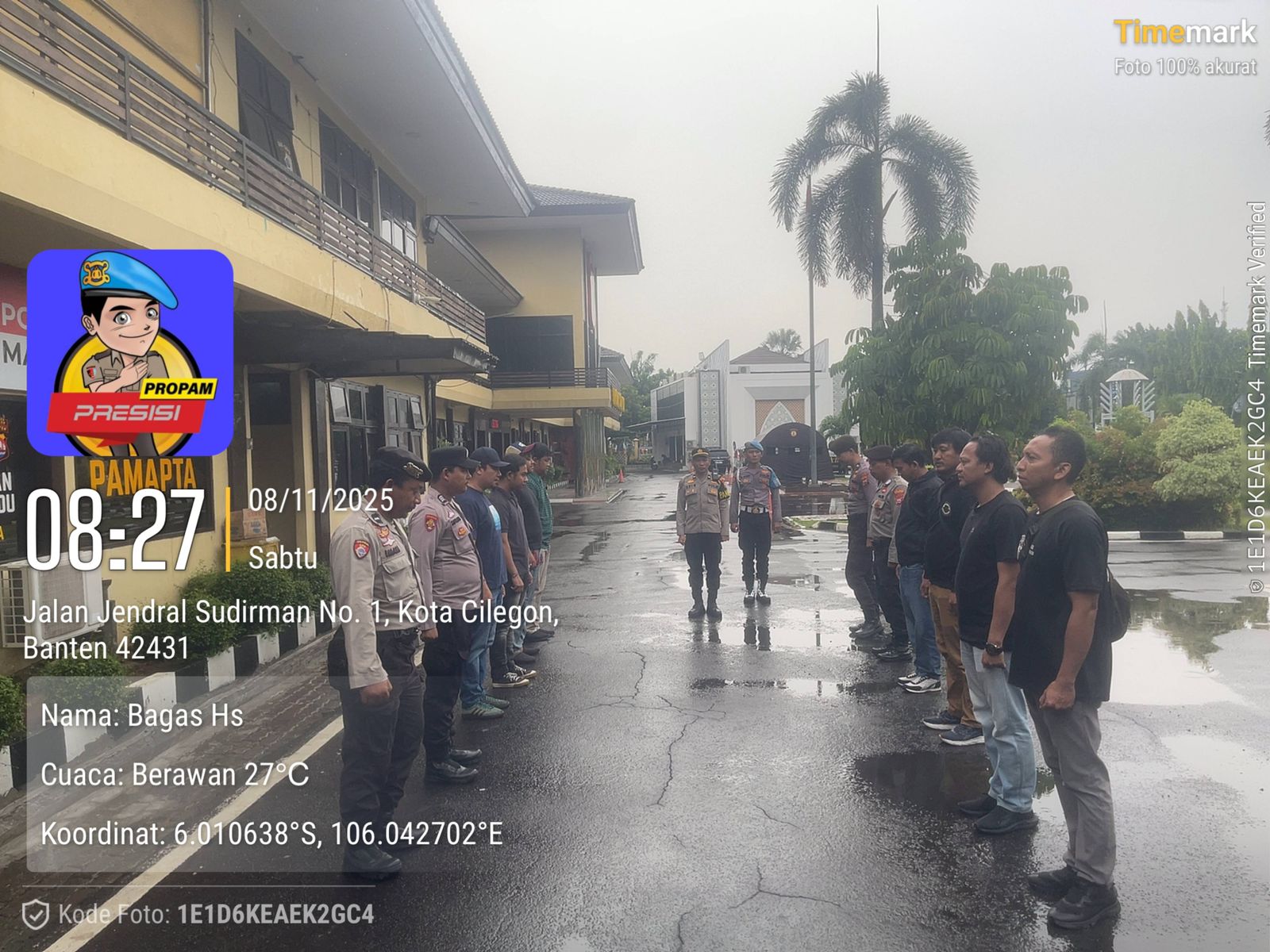 Kapolres Cilegon Polda Banten AKBP Dr.Martua Raja Taripar Laut Silitonga melalui Kasatreskrim Polres Cilegon AKP Hardi Meidikson Samula mengatakan, “kegiatan personel satreskrim polres cilegon melakukan piket di penjagaan pintu masuk Mako Polres Cilegon mengantisipasi adanya kejahatan yang menggangu kenyamanan dan keamanan mako Polres Cilegon dalam melakukan pelayanan kepada masyarakat kota Cilegon ".