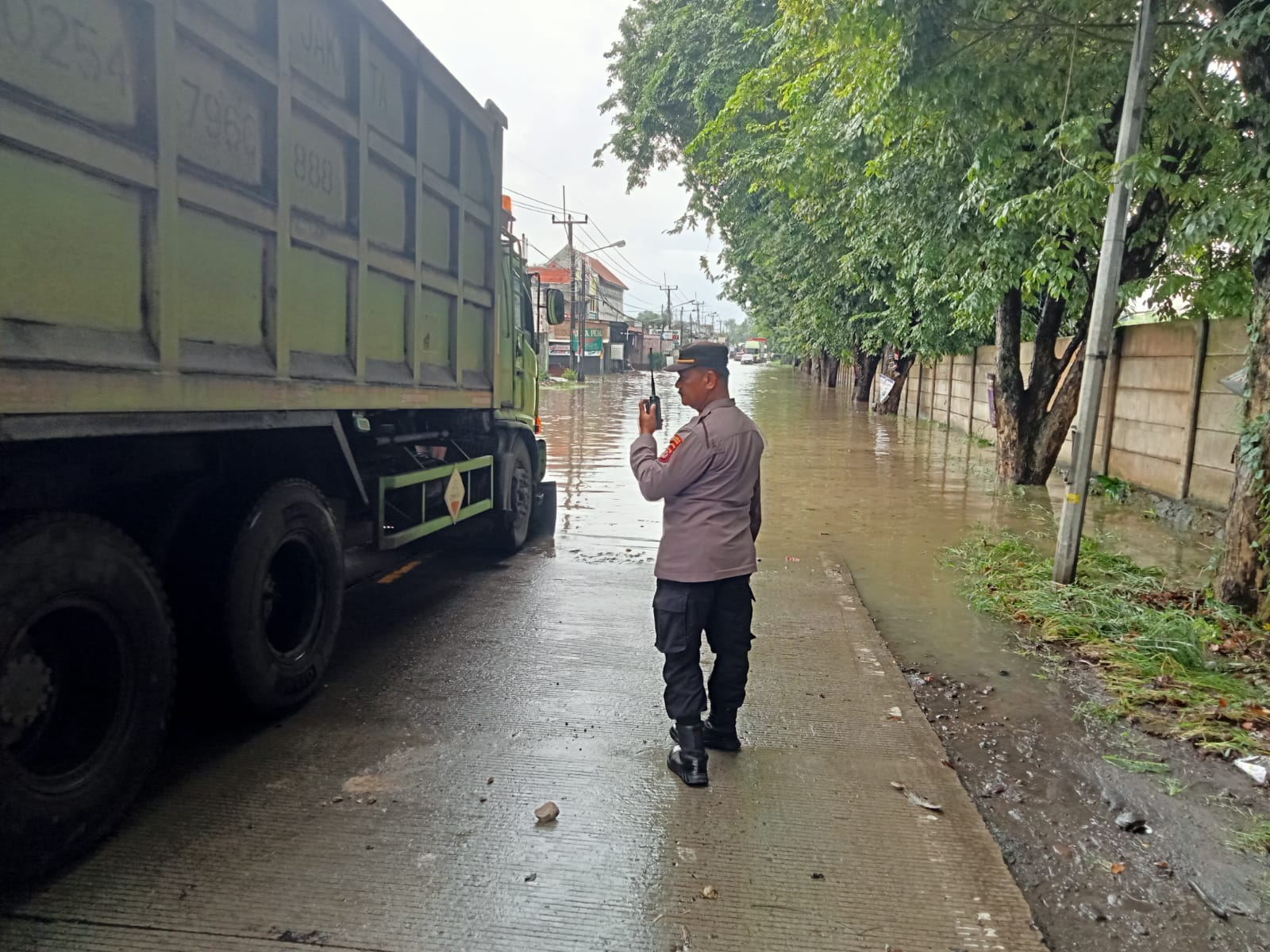 Terdapat Genangan Air,Polsek Ciwandan Turunkan Personil