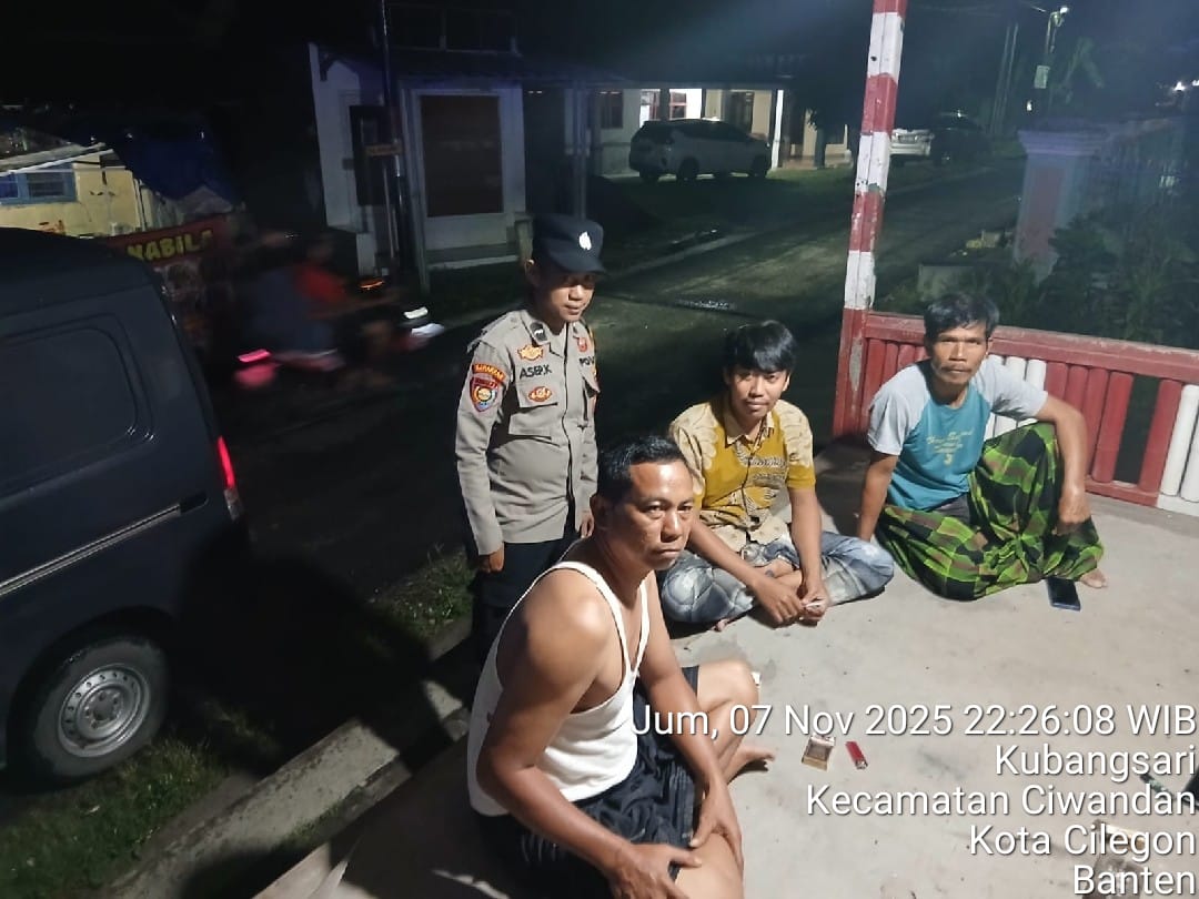 Cilegon - Guna Mencegah Terjadinya Tindak Kejahatan dan Menggiatkan Patroli Pos Ronda Siskamling di Pemukiman warga masyarakat,Personil Polsek Ciwandan Polres Cilegon Polda Banten Mengajak dan memantau pelaksanaan ronda siskamling di lingkungan daerah hukum Polsek Ciwandan, Sabtu (08/11/202).