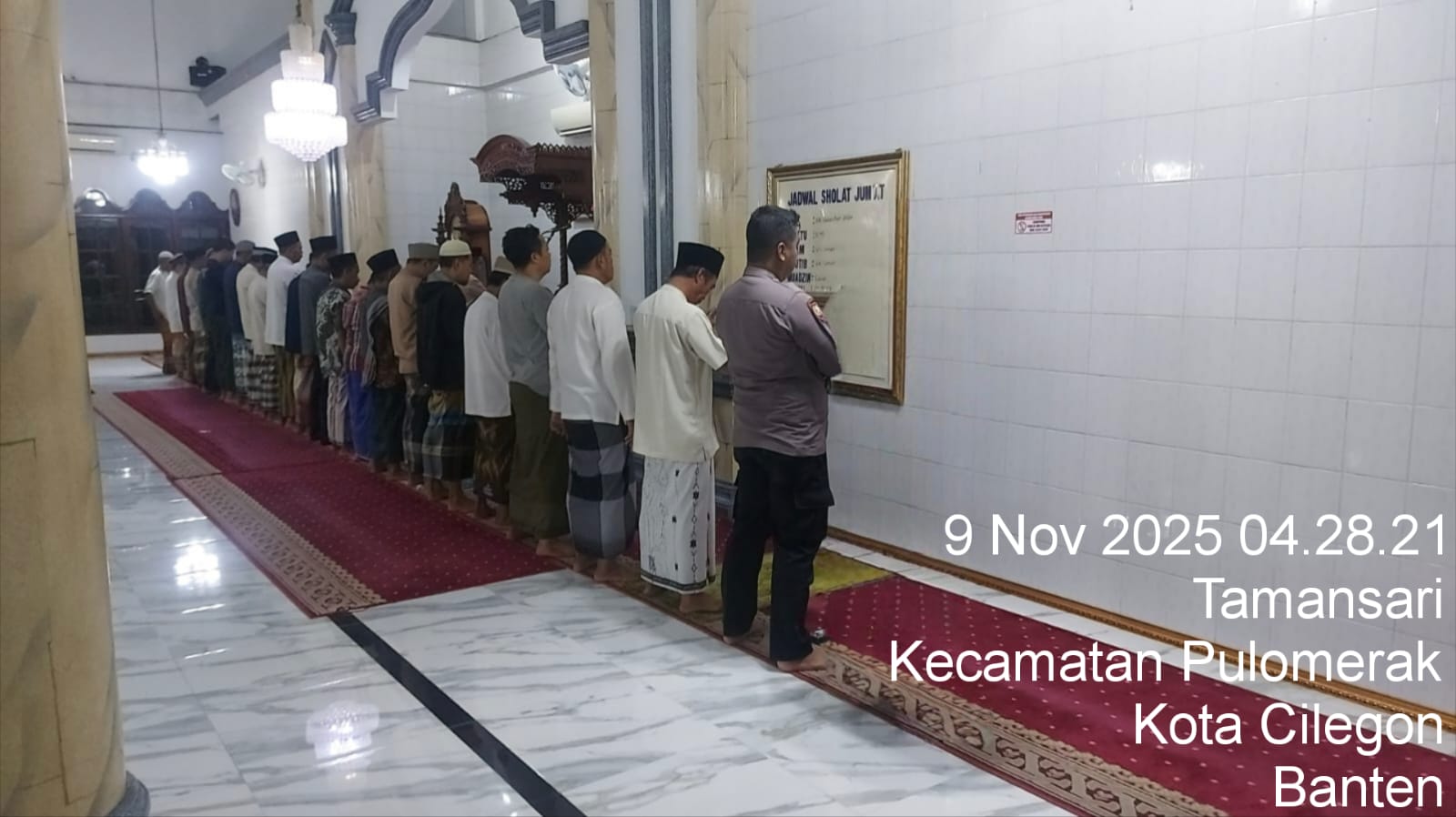 “Dalam kegiatan tersebut, Personil Polsek Kp Polres Cilegon Polda Banten turut berbaur dengan jemaah masjid dalam melaksanakan shalat subuh berjamaah. Setelah itu, dilakukan dialog interaktif antara petugas kepolisian dan masyarakat untuk mendengarkan aspirasi serta memperoleh masukan terkait dengan situasi keamanan dan ketertiban di lingkungan sekitar,” tambah Kapolsek.