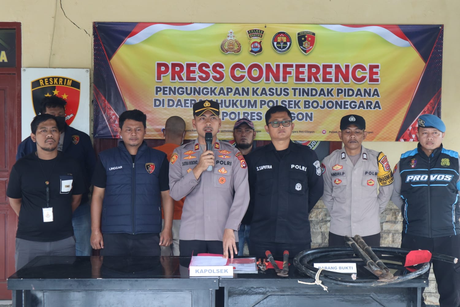 Keberhasilan pengungkapan kasus tersebut disampaikan langsung oleh Kapolsek Bojonegara, IPTU Muhammad Lazim Satria Wibowo, S.Tr.K., dalam kegiatan press conference yang digelar di Aula Polsek Bojonegara, Senin (10/11/2025).