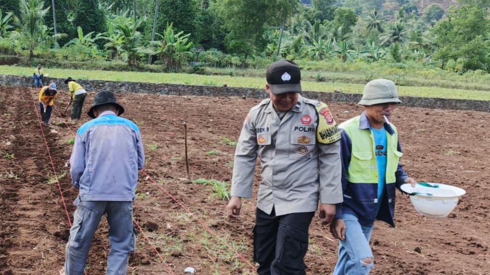 Giat Bhabinkamtibmas Lebakgede bersama poktan kepindis saat tandur jagung.