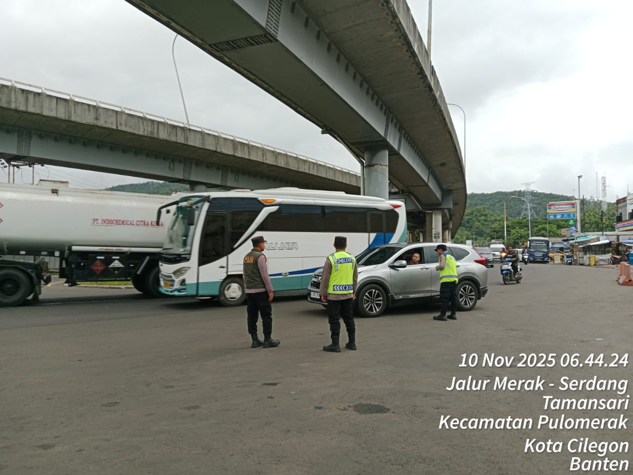 KSKP Merak Polres Cilegon Lakukan Pengaturan Arus Kendaraan Demi Kenyamanan Pengguna Jasa