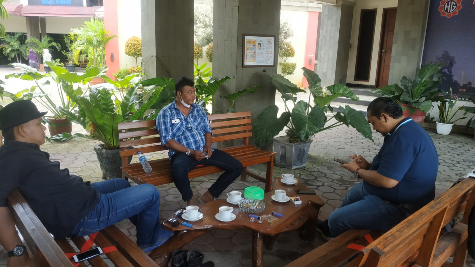 Personil sat intelkam melakukan koordinasi dengan tokoh pemuda kec. Puloampel kabupaten serang.