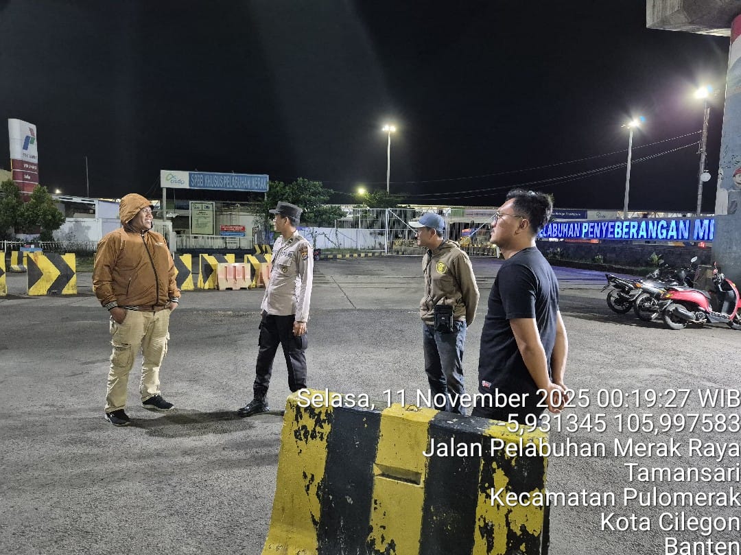 Cilegon - Personil Polsek Kskp Merak Polres Cilegon melaksanakan patroli di kawasan pelabuhan merak memberikan rasa aman dan damai, Selasa (11/11/2025)
