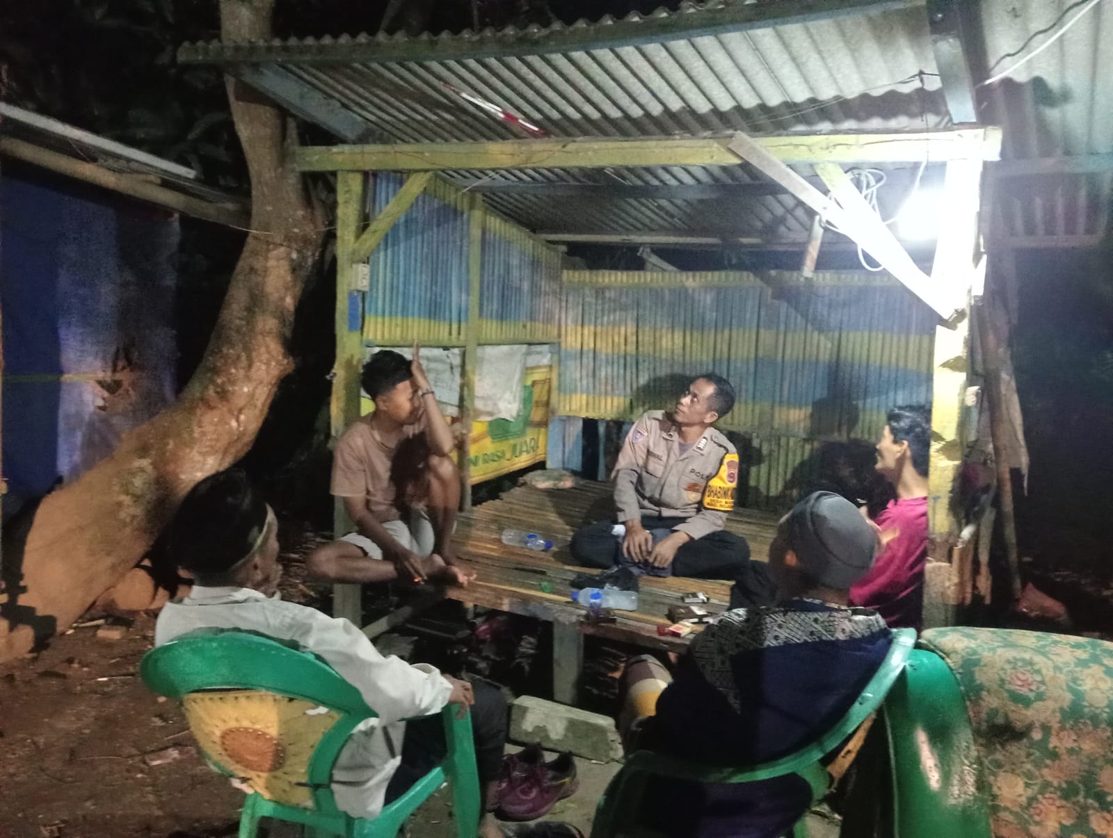 Anggota Polsek Bojonegara Laksanakan Cek dan Kontrol Pos Ronda Jaga Malam didesa Binaan