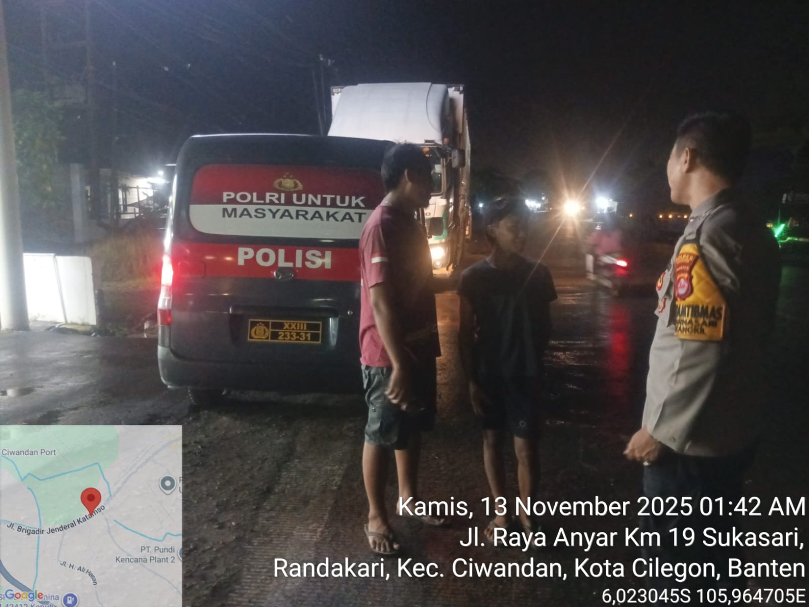 Cilegon - Polsek Ciwandan Polres Cilegon Polda Banten kembali menunjukkan komitmennya dalam menciptakan keamanan dan ketertiban masyarakat (kamtibmas) yang kondusif melalui Kegiatan Patroli Malam, Kegiatan ini dilakukan secara rutin dengan berkeliling di daerah hukum Polsek Ciwandan, Kamis (13/11/2025).