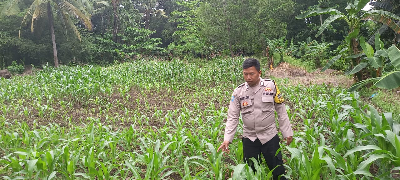 Bhabinkamtibmas Cek Tanaman Jagung di Kel.Kotabumi kec.Purwakarta Kota Cilegon.