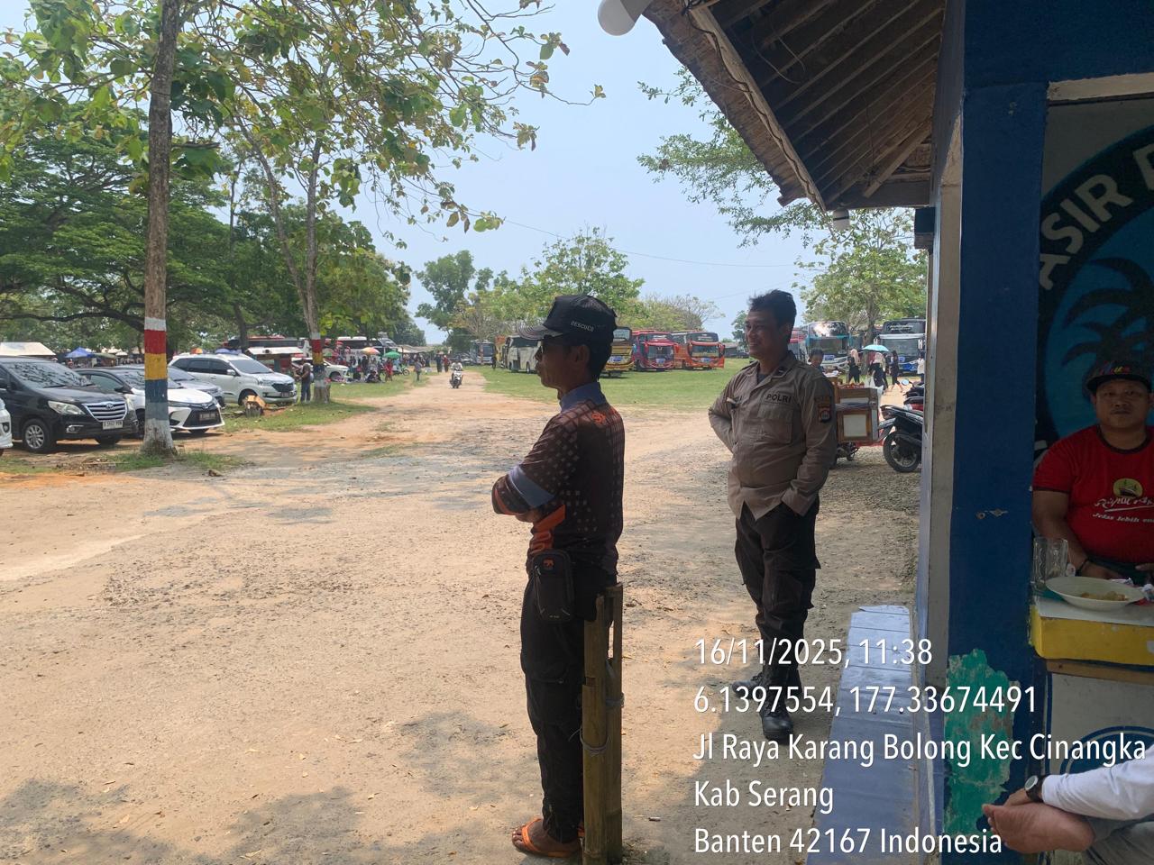 _*POLRES CILEGON*_ | Polsek Cinangka Polres Cilegon Polda Banten melaksanakan kegiatan patroli Serta memberikan Himbauan kepada pengunjung pantai yang berwisata dan Sambang kepada petugas penjaga pantai dan juga antisipasi harkamtibmas di Wilayah Hukum Polsek Cinangka Polres Cilegon Polda Banten, Minggu (16/11/2025).