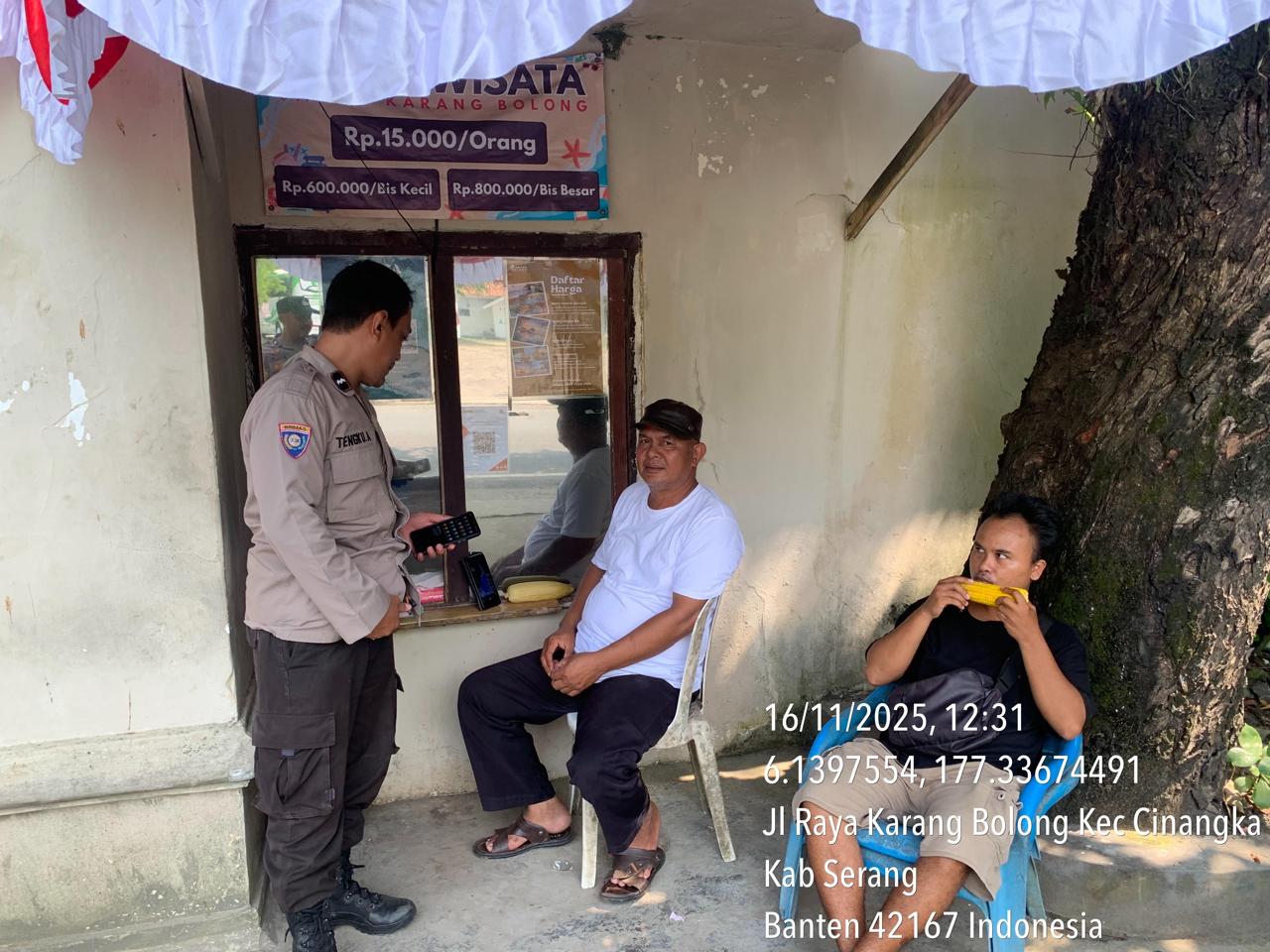 _*POLRES CILEGON*_ | Polsek Cinangka Polres Cilegon Polda Banten melaksanakan kegiatan patroli Serta memberikan Himbauan kepada pengunjung pantai yang berwisata dan Sambang kepada petugas penjaga pantai dan juga antisipasi harkamtibmas di Wilayah Hukum Polsek Cinangka Polres Cilegon Polda Banten, Minggu (16/11/2025).