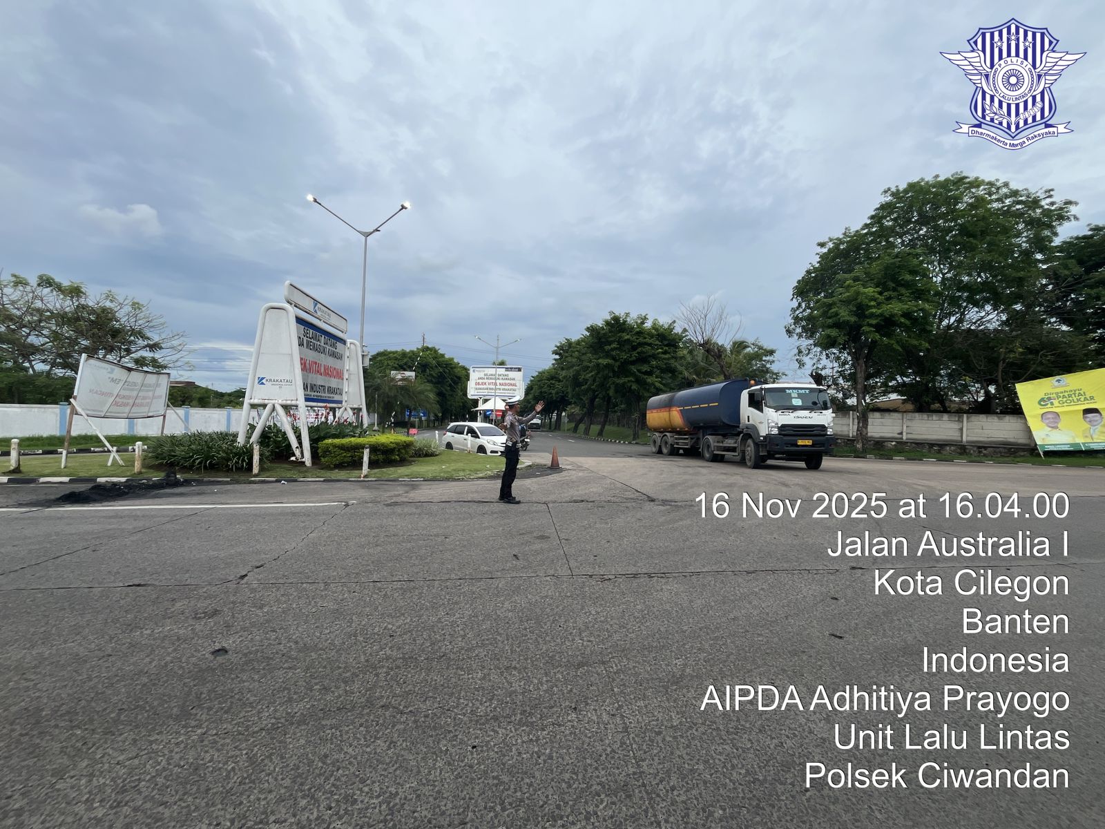 Personil Polsek Ciwandan melakukan pengaturan lalu lintas di depan Pos Lantas JLS Ciwandan dan peneguran terhadap pelanggaran kasat mata. Kegiatan ini dilaksanakan untuk memastikan keamanan dan kelancaran arus lalu lintas di wilayah hukum Polsek Ciwandan.