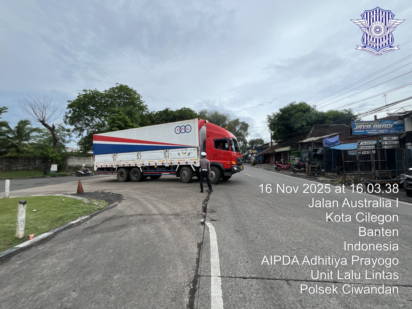 Personil Polsek Ciwandan melakukan pengaturan lalu lintas di depan Pos Lantas JLS Ciwandan dan peneguran terhadap pelanggaran kasat mata. Kegiatan ini dilaksanakan untuk memastikan keamanan dan kelancaran arus lalu lintas di wilayah hukum Polsek Ciwandan.
