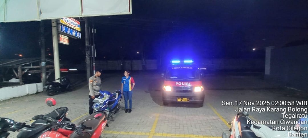 Cilegon - Patroli ini digelar oleh personil Polsek Ciwandan Polres Cilegon Polda Banten untuk Menekan Gangguan Kamtibmas dan mengantisipasi aksi kriminalitas Pada Jam-jam Rawan di pertokoan ataupun minimarket ,Di samping Patroli petugas juga melakukan himbauan dialogis baik dengan karyawan maupun para pengunjung, Senin (17/11/2025).