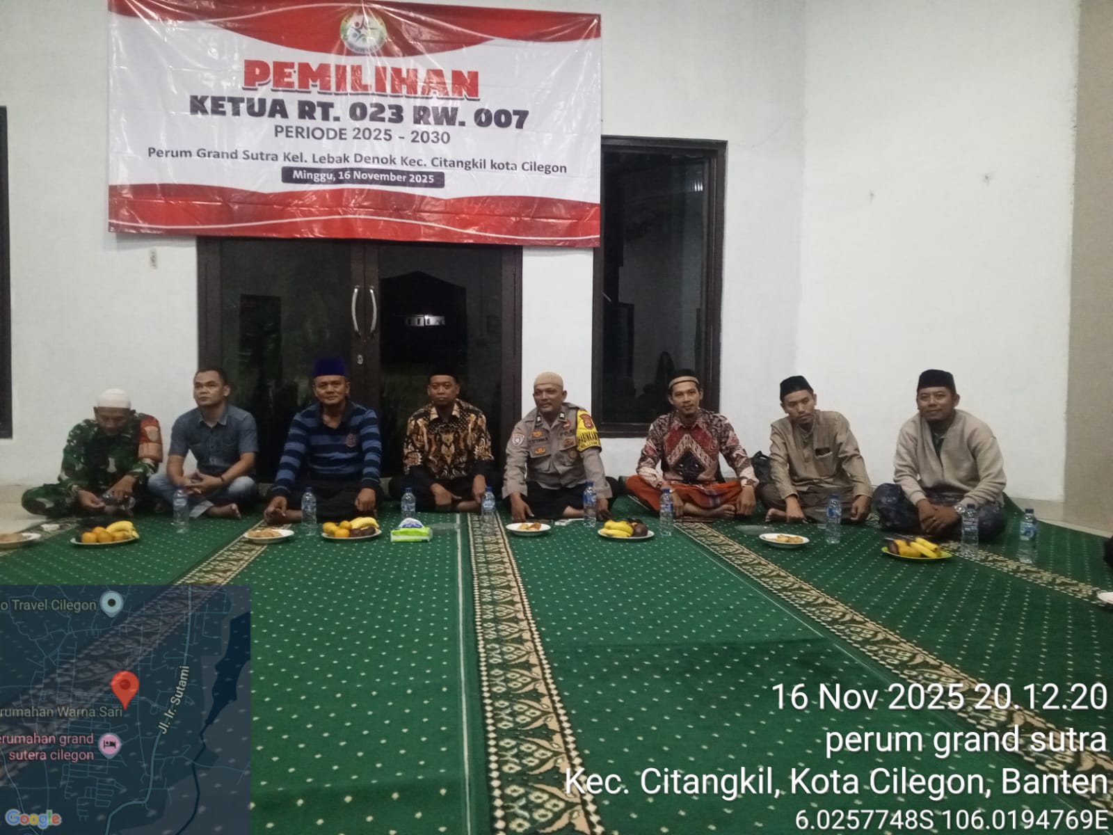Cilegon -  Bhabinkamtibmas Kelurahan Lebak Denok Polsek Ciwandan Polres Cilegon Polda Banten AIPTU Yudi Setiawan menghadiri pemilihan Ketua RT Lingkungan Perumahan Grand Sutera kelurahan Lebak Denok Kecamatan Citangkil Kota Cilegon, Senin (17/11/2025).